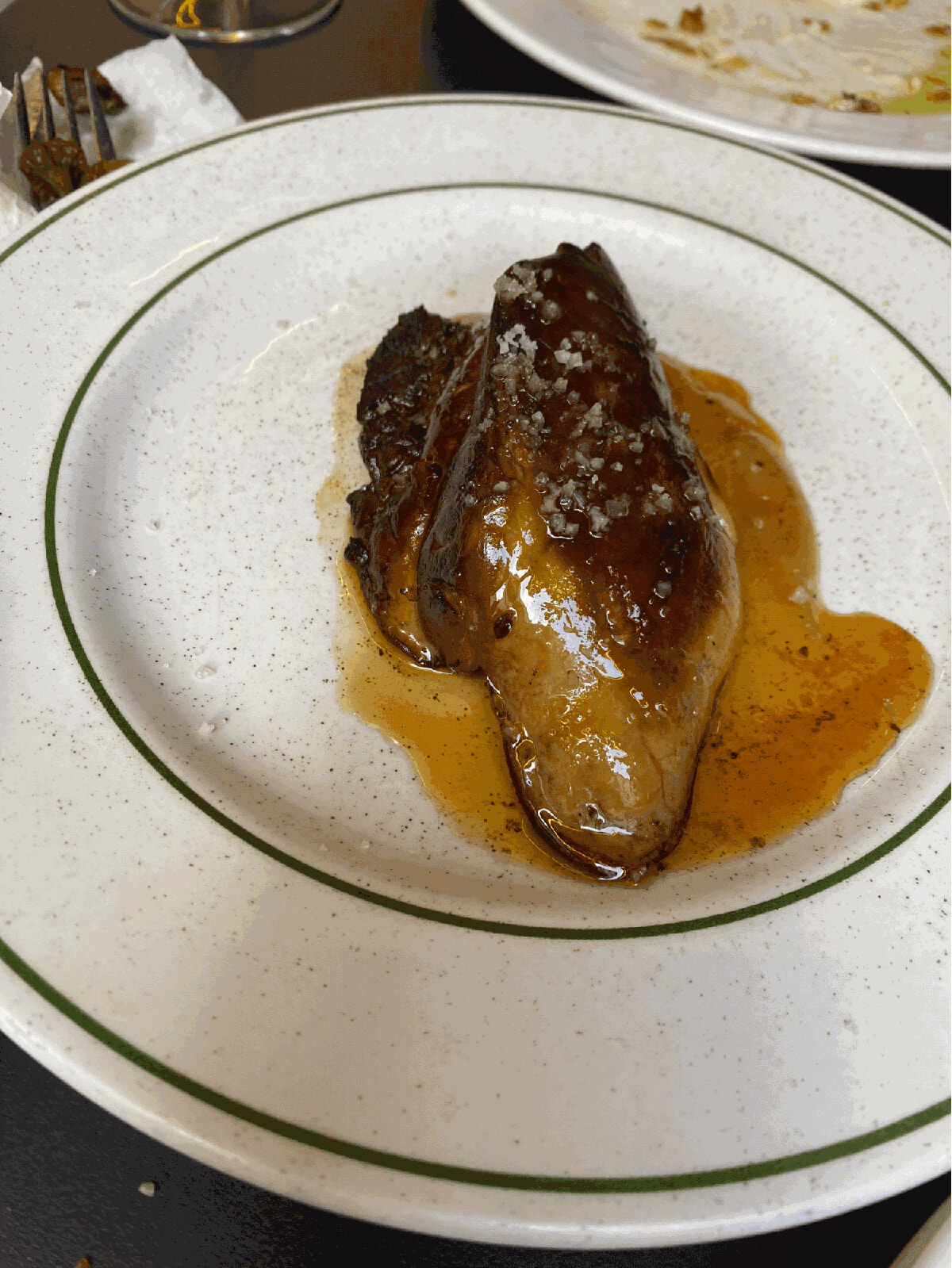 まだ穀物を口にしたことのない乳飲み子豚のポークは皮がカリッと焼き上げられて、肉は驚くほどクセがなくてジューシー。タコのグリルはナイフがいらないほど柔らかく、日本の茹でダコとはまるで別物の食感に感動。フォアグラがまた秀逸で、外側は香ばしく、中はとろりととろける絶妙な火入れ。甘いソースとのバランスも見事としか言いようがない。焼きの技術が群を抜いている一軒なので、訪れたらぜひグリル料理を中心にオーダーすべし。
