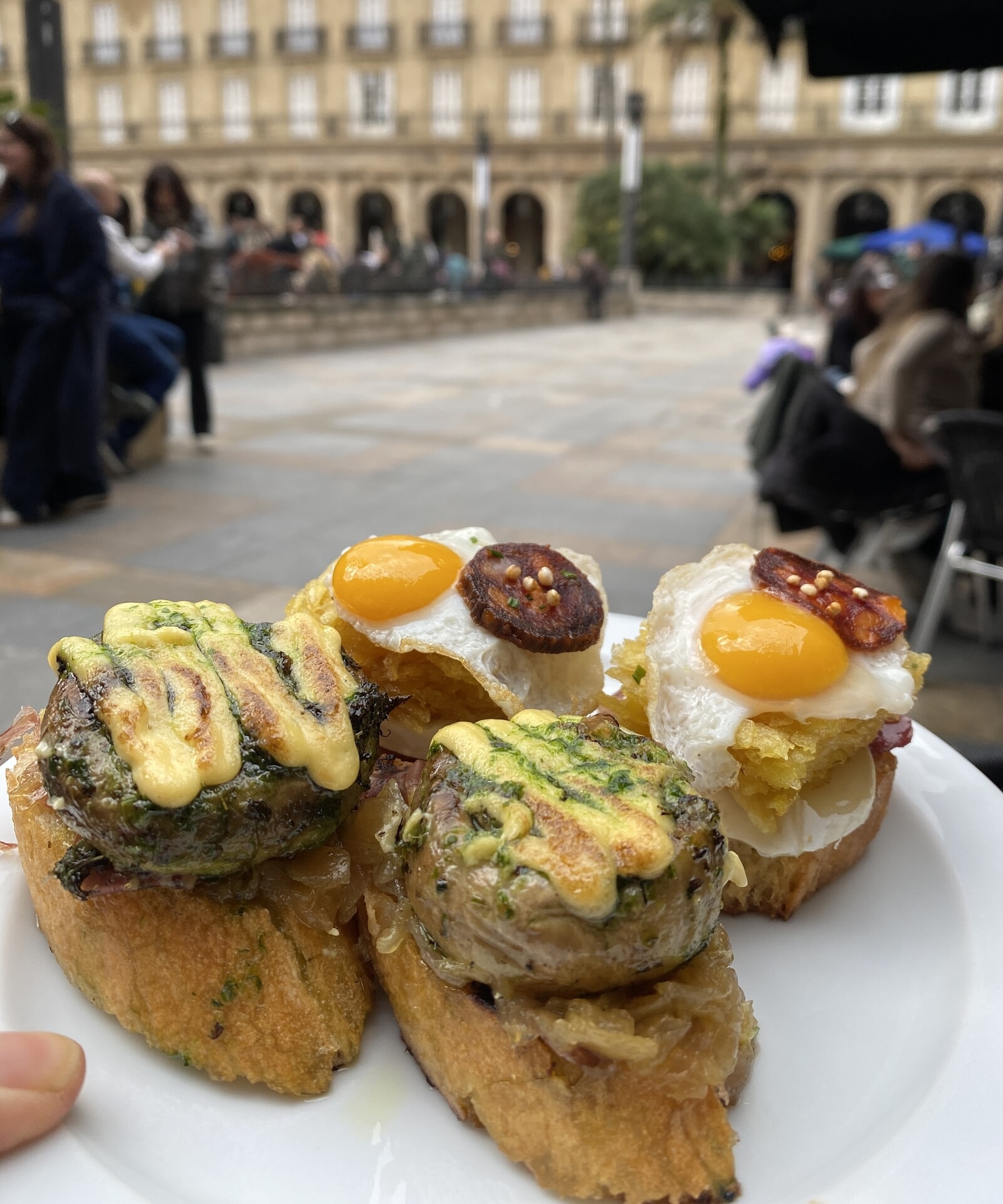ビルバオを後にし、バスに揺られてサンセバスチャンへ。最初に向かったのは、アンソニー・ボーディンも愛したことで知られるGambara。前回ここで食べた、きのこのソテーに卵黄を落としたあの一皿がどうしても忘れられなくて、ほとんど駆け込むようにして店へ向かった私。