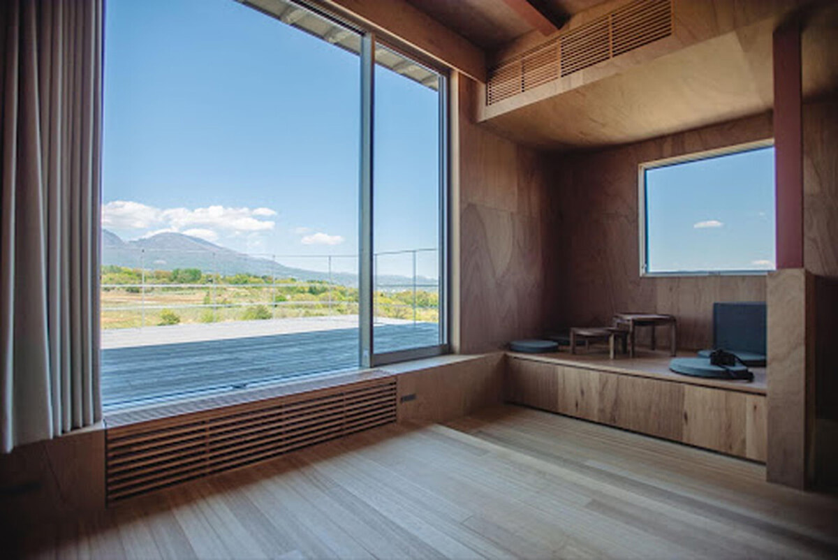 建築デザインは、京都を拠点に伝統的な日本建築を得意とする六角屋の三浦史朗氏。農場で実際に育った木々を自ら選定・伐採するところから設計をスタートし、「小岩井」という土地の個性に敬意を払った建築を実現した。たとえば、客室には、赤松や檜をはじめとする小岩井の地で育った天然素材を使用。この地を故郷とする宮沢賢治の神秘性を感じさせるデザインも随所に織り込まれている。