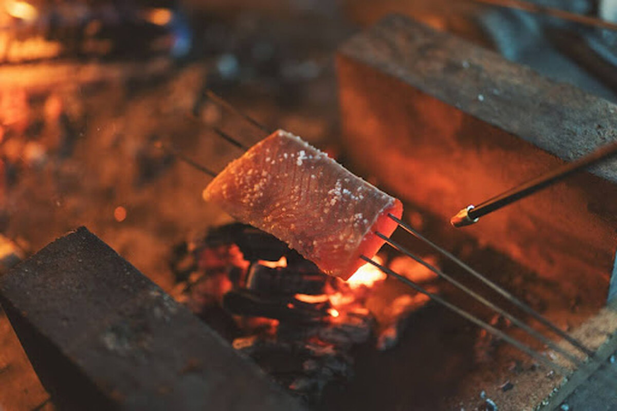 シェフの田村周平氏は、小諸・御牧ケ原を中心に信州各地の山野へ足を運び、旬の食材を採取。その日に手に入ったものが、その日の料理になる。調理には基本的に薪火を利用し、素材の力を引き出す。