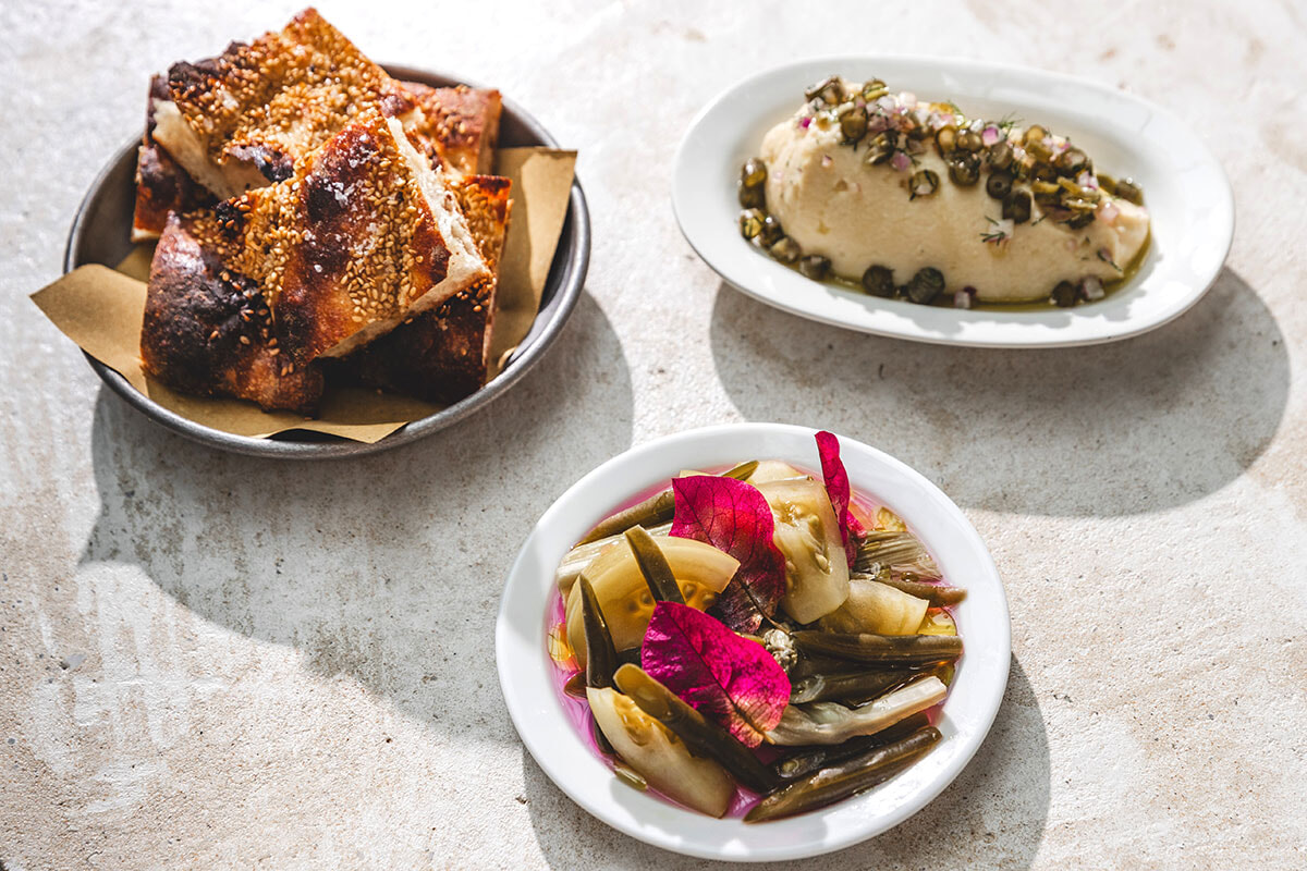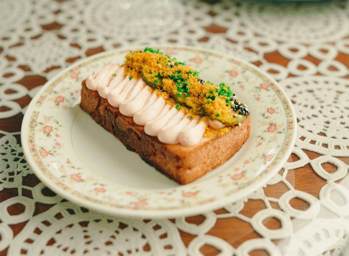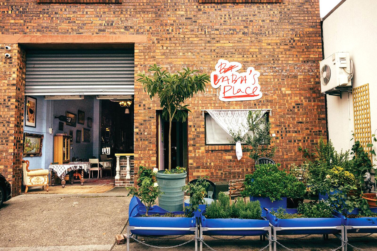倉庫が立ち並ぶマリックビルエリアは、ビールの醸造所やコーヒーショップ、カフェ、レストランなど近年おしゃれな店が続々とオープンしているいま話題の地域のひとつ。倉庫のガレージを改装したレストランが、「ババズプレイス」だ。おばあちゃんの家にあったような家具と空間のバランスがセンス良くマッチ。レバノン料理やギリシャ料理、イタリアンやアジア料理といったエッセンスが加わった遊び心あふれる料理は、絶妙なバランス感覚で舌を楽しませてくれる。オーナーのひとりで料理人のジャン=ポール・エル・トムはレバノンとマケドニア出身の移民の2世で、生まれ育ったシドニーの西部郊外には、中近東系、ヨーロッパ系、中華系のコミュニティがあり、その食の記憶が料理のインスピレーション源になっている。たとえば看板メニューの「タラマ・オン・トースト」には、ピンクのタラの卵とヨーグルトのペーストにゴマのプラリネ、ホエイで漬けたきゅうりのピクルス、からすみをトーストした食パンにトッピング。ひよこ豆のフムスには、中華料理の焦がした生姜ネギソースを加えて。オーストラリア料理らしいBBQチキンもメニューにあり、3度揚げした平飼いの鶏肉に、甘くてビターなガーリックキャラメルグレーズをかけた罪深い一皿。2月には近くに姉妹店であるカフェ「Sit」をオープンし、朝食も評判だ。