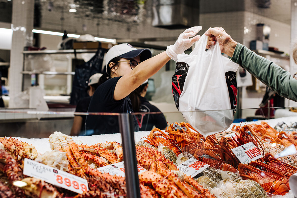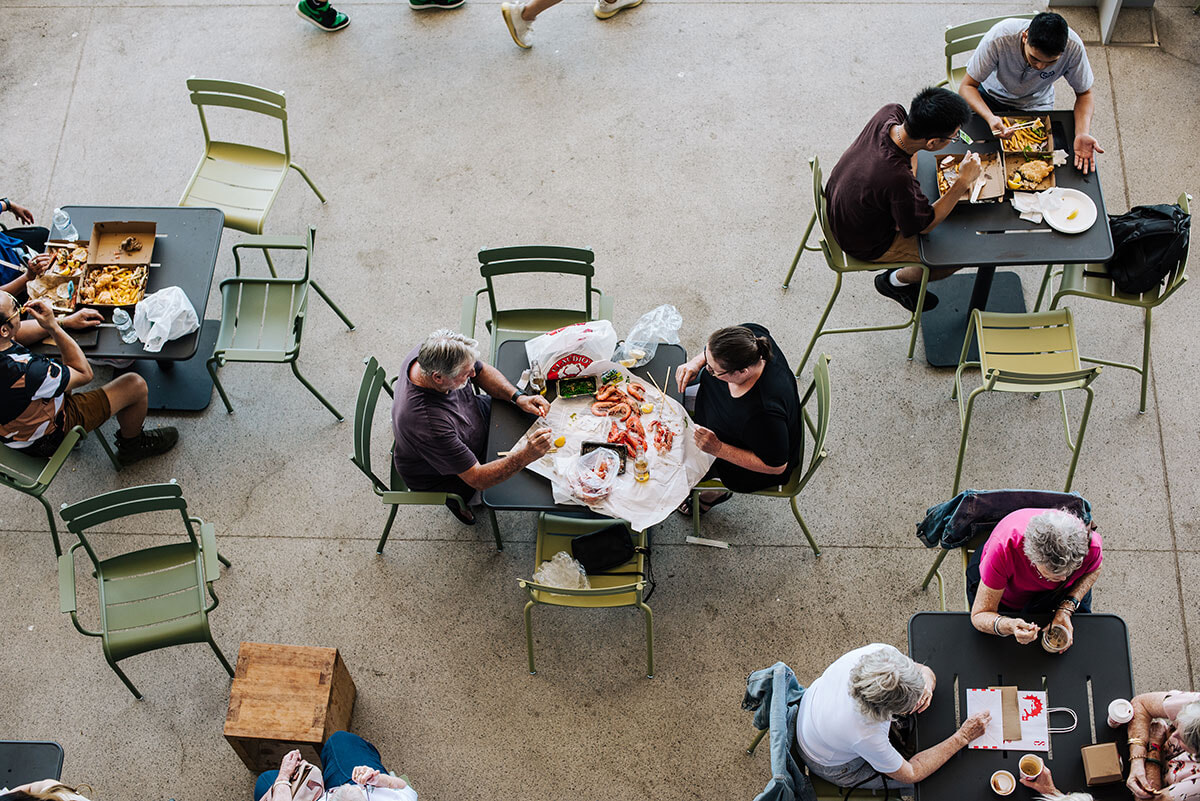 「もうシドニー・フィッシュ・マーケットに行った?」というのが、シドニーっ子たちの合言葉になっているほど、いま最も話題なのは今年2026年1月にオープンした、世界で3番目に取り扱い品種数が多い魚市場。広大な35,000平方メートルの複合施設と敷地内には、漁船が行き来する波止場や競りの行われる卸売魚市場だけでなく、一般の人が購入できる鮮魚店、デリカテッセン、寿司バー、グローサリー、スイーツショップ、ジェラテリアなどの40軒以上のショップがずらり。特にシーフードを使ったデリカテッセンの料理ジャンルの幅広さは驚くほどで、シュリンプカクテル、生牡蠣、刺身、変わり種寿司、フィッシュ&チップスや中華やタイ料理などのロブスターヌードルやカニのスパイス炒めまで、オーダーしてから調理する店も多く、出来立てが食べられるのはうれしいポイント。ドリンクもクラフトビール専門店、ワインショップ、バー、フレッシュジューススタンドもあり、選びたい放題だ。テラス席や店内にもイートインスペースが設けられているので、買ってきたものをいろいろ広げて食べるのが楽しい。週末のランチ時は大渋滞になるので、時間をずらしていくのがおすすめだ。