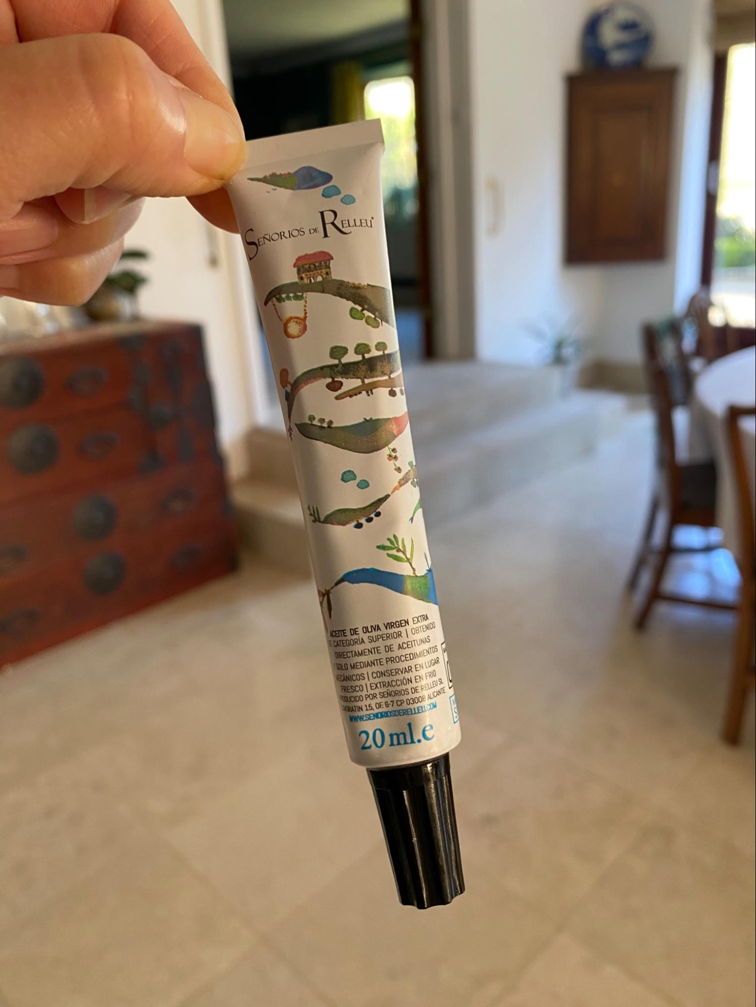 バスク地方では生産されていないと分かっていながらも、スペインといえばやはりオリーブオイル。店主が勧めてくれたのが、Señoríos de Relleuのこの小さなチューブタイプ。目薬のように食材の上へ一滴落として味わう斬新的なスタイルが気に入った。“Intense(キョーレツ)”の表示通り、ほとんど苦味といっていいほどに搾りたてのオリーブの青々とした香りが口いっぱいに広がる。ほんの少量で素材の魅力を引き立てる、いわば“Less is More”を体現した、新しいオリーブオイルのかたち。