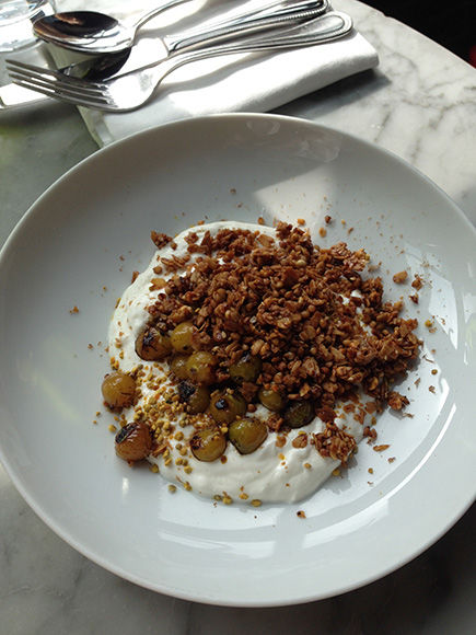 「Wood-roasted Husk Cherries – yogurt, granola, bee pollen」16ドル。