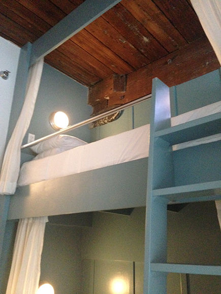 ブルックリン・カルチャーを牽引しているとも言えるこのホテル、インテリアのディレクションはアンドリュー・ターロウ氏が手がけています。彼はウィリアムズバーグで人気のレストラン「Marlow & Sons(マーロウ・アンド・サンズ)」なども手がけた人物で、ブルックリンのトレンドを生んだとも言える人。ホテルの部屋は70室でタイプもさまざまですが、今回宿泊したお部屋はこちらの「Bank Bed」。2段ベッドでコンパクトながら、天井が高く快適です。奥にはテラスもあります。
