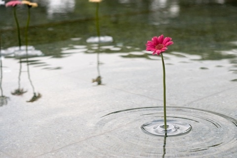 大村 卓さん(http://www.oodesign.jp)による、水に浮かべる一輪挿し。広がる波紋のようにも見え……。