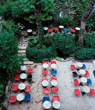 中庭のオープンカフェ。ランチには近所のOLやアーティストたちでで賑わう。