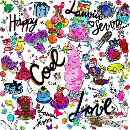LANVINの香港旗艦店がSEVVAのすぐ近くにあることで知り合い、たちまち意気投合、コラボレーションを約束したというアルベールとボニー。LANVINとSEVVAに共通するエレガントでカラフルな美しさと、人生を楽しむユーモアのセンスを表現するため、ボニーがバラエティ豊かな16種類のスイーツとスナックをデザインし、アルベールはプレースマットやサンドイッチのラッピングに使用するオリジナルイラストを描き下ろした。香港とパリでメールをやりとりしながら、お互いが納得のいく仕上がりまで半年近くを費やしたという。