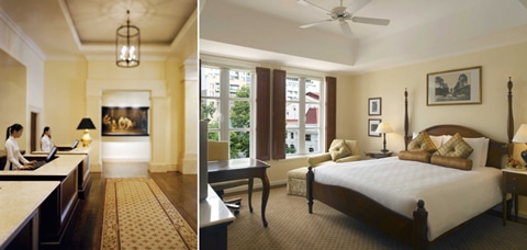 (左)すっきりと落ち着いた印象のレセプション(右)客室のひとつ「パーク・キング」