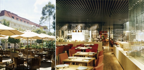 また一歩館内に入ると、東京のパークハイアットのような斬新でスタイリッシュなイメージとは正反対のノスタルジックな趣が漂っています。最もそれを感じさせるのは、いたるところに使用されているチーク材でしょうか。高級感はもちろんですが、伝統家具の重厚感や、壁に掛かる印象的な絵、客室に飾られるモノクロのかつてのベトナムの様子など、館内のアートとともに、ベトナムに居ることを楽しめるよう雰囲気作りが素敵です。「スーパーポテト」(日本企業)が手がけたレストランは、オープン当時、ホーチミン初のオープンキッチンを導入して話題になりました。あまりあちこちを訪れずにホーチミンのこのホテルに滞在しながら、ホテルの’スアン・スパ’や、街のデイスパで疲れを癒し、おしゃれなレストランを毎日食べ歩き、そして可愛い雑貨や小物、洋服のショッピング・・・。きっと大満足&ストレス解消の旅となることでしょうね!! 仕事でなくやってみたいです。(K.S)
