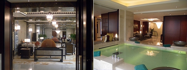 (左)「プレジデンシャル・スィート」のリビングルーム(右)「プレジデンシャル・スィート」のプライベート・リラクゼーションプール