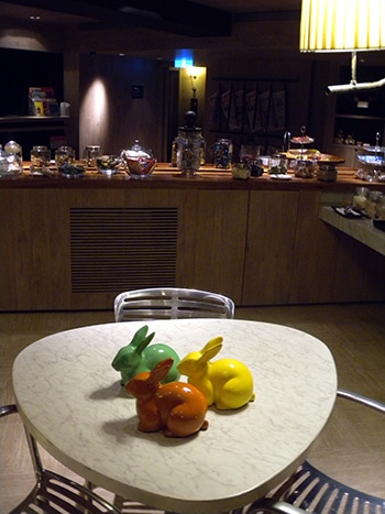 2階にある「H.Qラウンジ」。24時間無料で使える便利さは旅行者には本当に嬉しい便利なスペース。陶製ウサギは館内の至る所に置かれている。