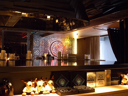 レストランは1階にあり、レセプションに隣接しています。このレストランはバーも併設され、「333Restaurant& Bar」として機能。ここの壁や天井は、アートなエンボス加工のメタル・スチールで覆われており、とても優雅で不思議な空間が演出されています。ずらり揃うオリジナルのカクテルやワインなどとともに、ハイ・ティーもなかなかの人気だそう。レストランでは本格的なセットメニューやインターナショナルキュイジーヌを提供。若いスタッフが気持ちよく対応してくれるのも快適な理由でした。そしてホテルは、2011年と2013年の「アジア太平洋地区・ベスト・ブティックホテル」賞を受賞しています。(K.S)