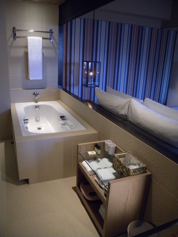 同じ客室内のバスルーム。バスタブ都シャワーブースが分かれていて使い勝手が良い。トイレも日本のシャワートイレを使用。