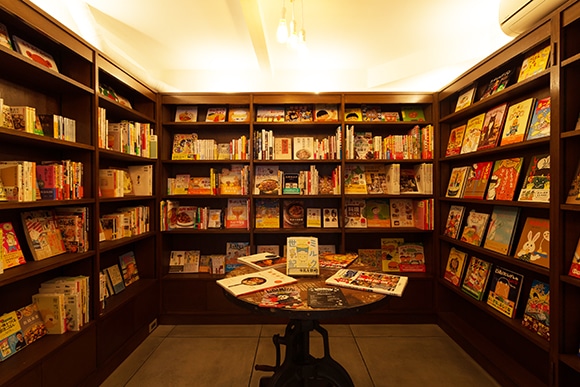 児童書からスタートした取次店とのお付き合いから、絵本や児童書が充実。親子連れも訪れる。