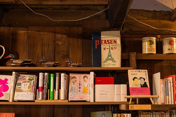 以前は住居スペースだった2階の床を抜いた開放的な空間に、新刊書や古書、ジン、中古レコード、雑貨などが並ぶ。本の品揃えが刻々と変わったり、喫茶席が増えたりと日々進化している。