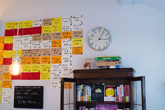 2016年4月にオープンし、たちまち本好き、お酒好きの心を同時に掴んだのが「呑める本屋」をコンセプトにしたこちら。食の専門書店であり、カウンターではコーヒーやお酒がいただけるという独自のスタイル。食に特化した理由は「食なら釣りや落語などいろいろなチャンネルにつなげることができるから」と店主の西谷将嗣さん。棚には約800〜1000冊の食にまつわる本がずらり。小説、食文化、芸術関連、エッセイ、児童書など、多彩な品揃えに目移り必至だ。食欲を刺激されたらカウンターへ。壁にずらりと貼られたメニューはユニークかつ手頃なものばかり。ひとりでも友達とでもふらりと立ち寄れる気軽さが嬉しい。