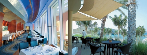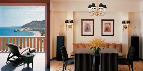 (左)アル・フスン スペシャリティ・スウィートのバルコニーからの眺め(右)スペシャリティ・スウィートのダイニングルーム