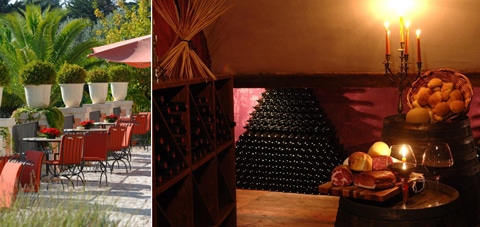 (左)午後のテラス、ランチもお茶もOK (右)さすがイタリア、毎日食事はほぼ主役