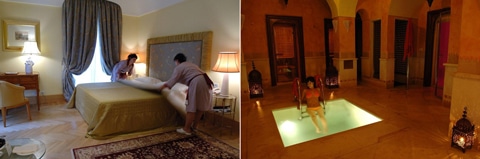 (左)客室のひとつ(右)スパ