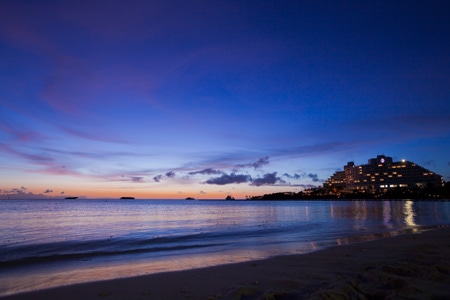 夕景に染まる「ANAインターコンチネタル万座ビーチリゾート」の全景