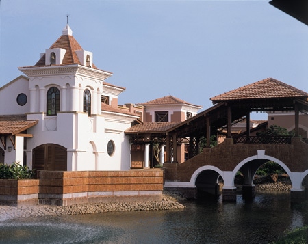そのエキゾチックな美しいリゾート地にあるのが、’パーク ハイアット ゴア’です。海辺に佇む静かなリゾートで、オープンは2002年12月26日でした。敷地は45エーカーという広大な土地。敷地内には贅沢な2階建てのテラコッタ建築が建ち、リゾートに相応しい和らいだムードを醸し出しています。ただ、所々に見られる碧い絵タイルがポルトガル支配の名残りであるアズレッジョを思わせます。リゾートは海に面してはいるものの中央には大きなプールがあり、多くのゲストはこのプールやプール際で1日中寛いでいるのです。