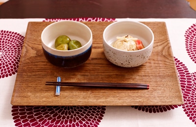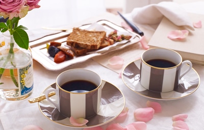 「ROOM SERVICE」のテーブルウェアコレクションの一部。写真上)茶の湯 抹茶椀ペア ¥4,000 写真下)Cafe ペアカップ&ソーサー ¥5,000 ※写真はイメージです