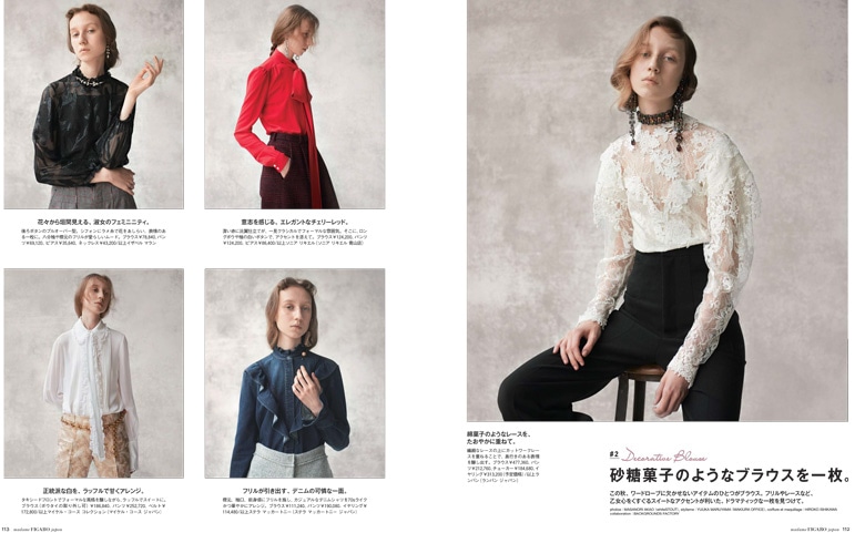 新しい季節に纏いたいのは、ドラマティックな服。たとえば、砂糖菓子のような甘いブラウスを一枚……。フィガロが提案する8つのキーワードから、ロマンティックな最旬おしゃれを紐解いて。