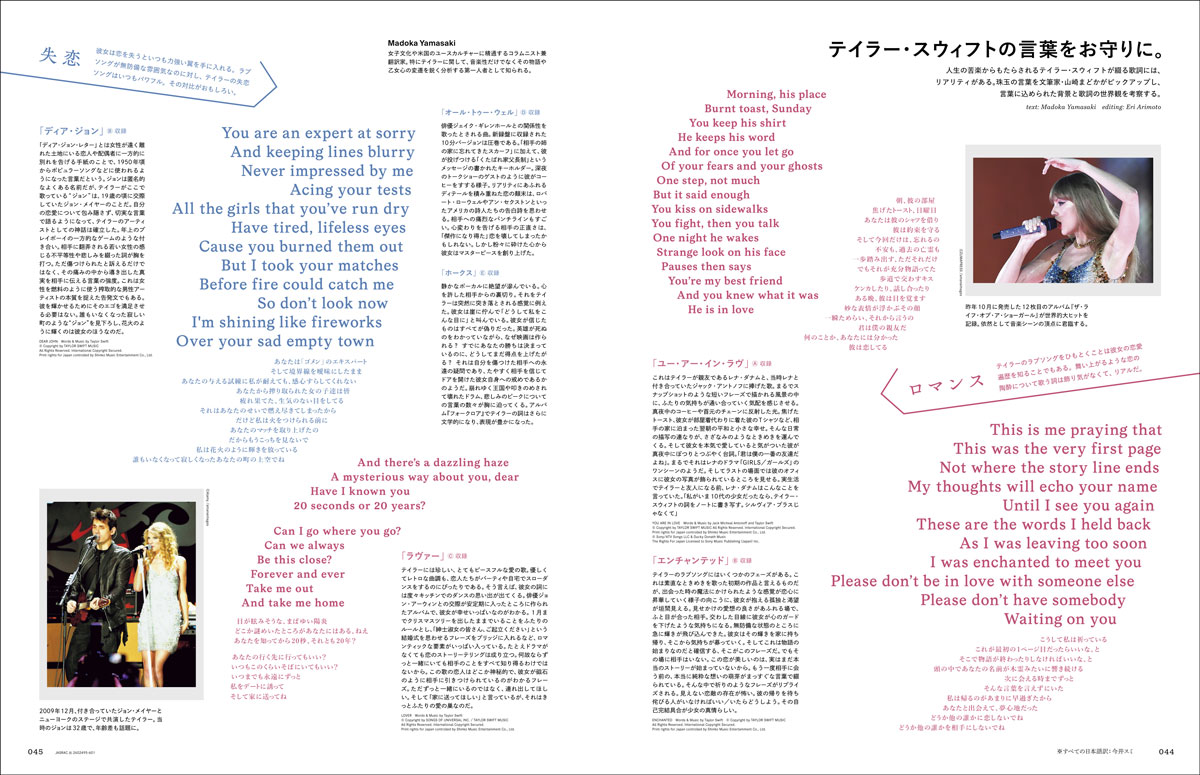 人生の苦楽からもたらされるテイラー・スウィフトが綴る歌詞には、リアリティがある。珠玉の言葉を文筆家・山崎まどかがピックアップし、言葉に込められた背景と歌詞の世界観を考察する。