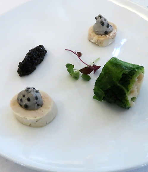レストラン、ル・パティオナータのメニュー内「パッショネモン・キャヴィア」で味わえる料理例。photos:Mariko OMURA