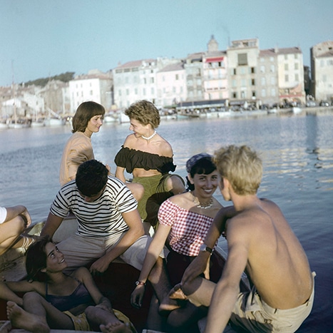サントロペを背景にした船上の若者たち(1949年)やダンスに興じるカップル(1958年)の写真は、装いを含めてサントロペの歴史を物語る。photos:©Willy Rizzo