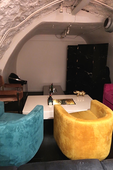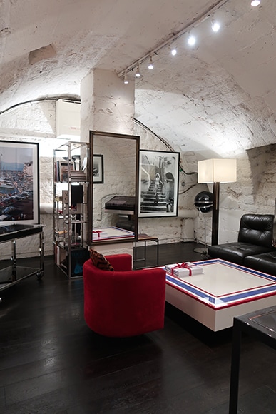 ウィリー・リッゾって家具デザイナーでは? と思う人もいるのではないだろうか。写真家と同姓同名というのではなく、これは同一人物。1968年から彼は家具デザインをはじめ、それらは今もオリジナルに忠実にイタリアで生産が続いている。このステュディオ・ウィリー・リッゾではそれらの展示販売も行い、また地下には彼の家具を配したシネマ・ルームも! このスペースでは、ブリジット・バルドーの『殿方ごめんあそばせ』、ルイ・ド・フュネスの『サントロペ・シリーズ』などサントロペを舞台にした映画の抜粋が楽しめる。