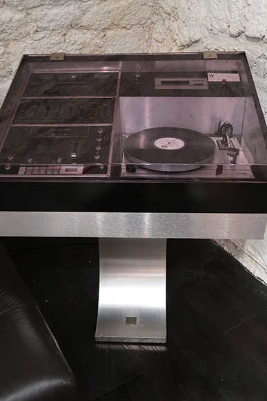 地下のプロジェクション・ルームではリッゾがデザインした椅子で鑑賞。1969年にデザインされた画期的なカセット&レコードプレーヤーは、残念ながら非売品だ。photos:Mariko OMURA