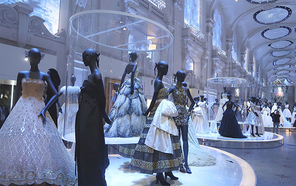 パリ装飾芸術美術館の『クリスチャン・ディオール、夢のクチュリエ』展より。星が降り注ぐ舞踏会の展示。