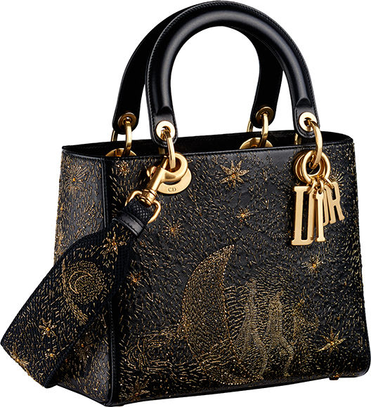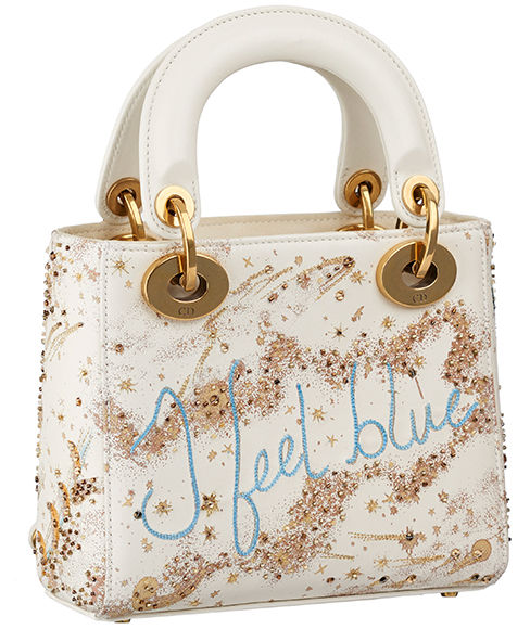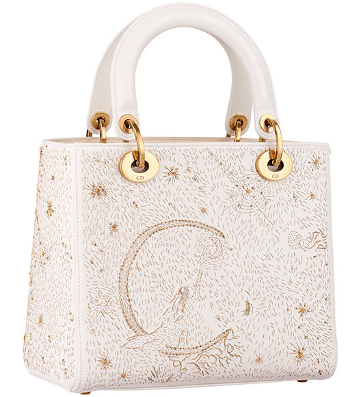 「The Moon In My Eyes」の刺繍を施されたソフトカーフのレディ ディオール。ショルダーベルトは取り外しできる。オフホワイトと黒の2色あり。