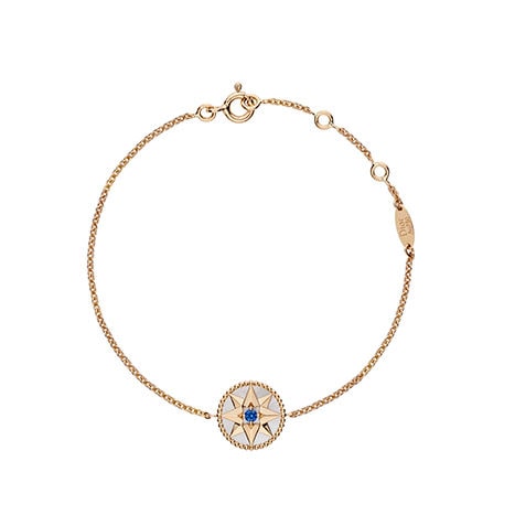 漆の濃いブルーが神秘的なピアスもあれば、ブルーのサファイアが輝くディオール ファイン ジュエリーのローズ デ ヴァンのブレスレットも。