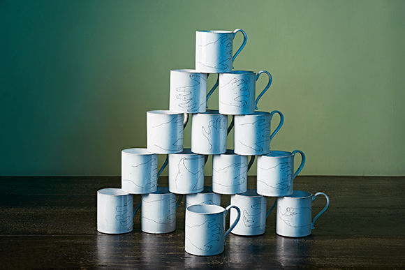 さて、アスティエ・ド・ヴィラットが目をつけたのは、彼女の別の才能である。それはデッサン! インスタグラムで彼女のデッサンを見て、アスティエ・ド・ヴィラットのブノワとイヴァンは早速彼女にアプローチしたそうだ。今から3年前のことで、その結果、彼女のデッサンによる17種のマグカップがこの秋誕生した。
