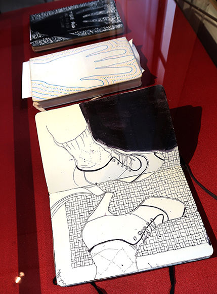 発表会場に展示された、魅力溢れるルーのデッサンやデッサン帳。オリジナルのデッサンは1点2,000〜3,000ユーロで販売されるそうだ。