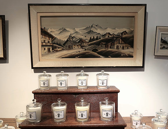 2008年から始まったパフュームキャンドルのクリエイション。新作Grand Paradisの発表には土地をイメージさせる絵画を展示して。