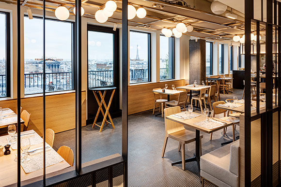場所はオスマン通りに面したメンズ館の上。今年7月には9階にテラスレストランがオープンするが、現在は7階と8階の2フロアがプランタン・デュ・グー。途中メンズ・フロアで買い物をするのならエスカレーターで、しないのなら地上階の奥右手にある直通エレベーターで! 活用するにあたってのうれしいポイントは、まず日曜営業。そして開店と同時に9時45分から朝食がとれ、そして11時からランチタイムが始まり、そのまま閉店までずっと何かしら食事がとれることだ。さらに、買い物した食料品を一時預かりするサービスがあるというから、これは便利では?