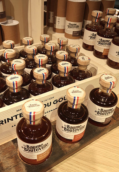 ブートゥヴィルで作られるアルチザナルなバルサミコ酢。コニャック樽の中で熟成した3年もの、6年もの、10年ものの3種。14.20〜24ユーロ。牡蠣やホタテ貝にも!