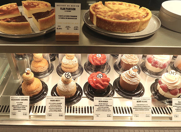 8階はレストランと生鮮食品だ。野菜、魚、肉、チーズ、パン、パティスリーの売り場があり、これらの売り場はどこもレストラン、イートインスペースに直結している。肉はアクラムのアトリエ・ヴィヴァンダ、野菜はジョエル・ティボー、パンはゴントラン・シェリエ、パティスリーはクリストフ・ミシャラク……と、ブランド好きの日本人の心をくすぐる名前が並ぶ。