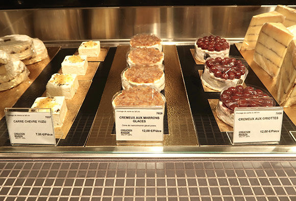 ユズ・シェーヴル、マロン・グラッセ+クリーミーな牛チーズ、グリオット・チェリー+クリーミーな牛チーズ……これらのクリエーションを前に、選択に迷う。セップ茸を挟んだカマンベール、イチジクをはさんだブリーなどもあり、迷いは続く。