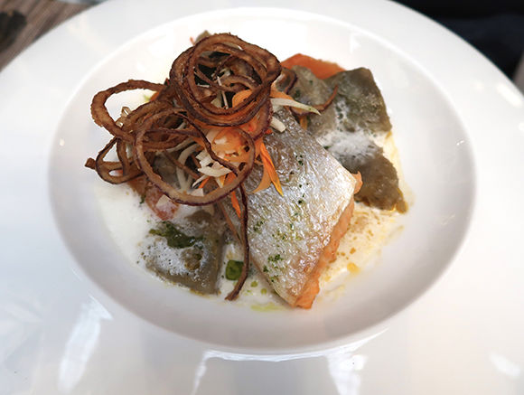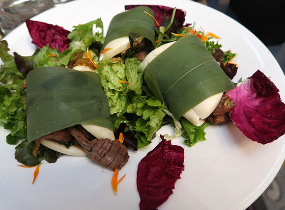 12時から22時までの食事メニューより。蒸しパン(バオ)のバーガーは、いまパリで人気のアジアン・ストリート・フード。メニューに早速取り入れている。BamBao 22ユーロ。