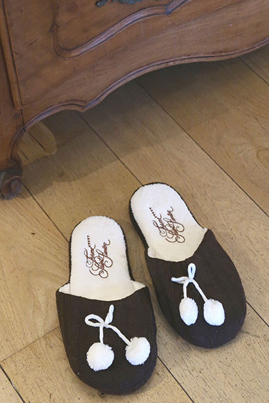 別館のテラスからも、セーヌ河の眺めが。こんな景色とチャーミングな客室用スリッパがあれば、部屋でついゴロゴロとしてしまいそう。