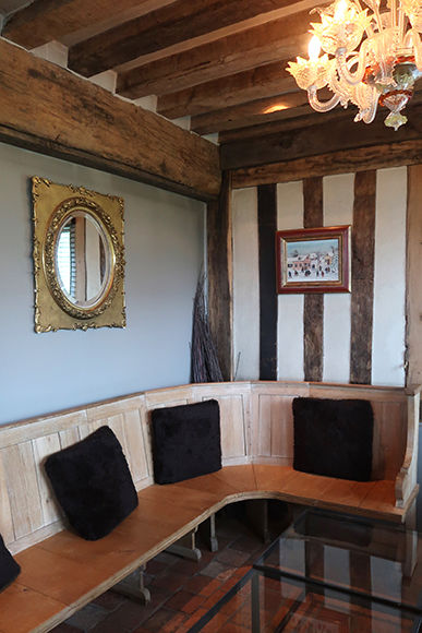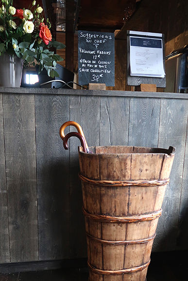 もうひとつはビストロのラ・ブーカンヌ。ノルマンディの典型的建築の藁葺き屋根の一軒家の中にある。ノンストップで営業していて、何時でも食事ができるというのは旅の身にはありがたい存在ではないだろうか。