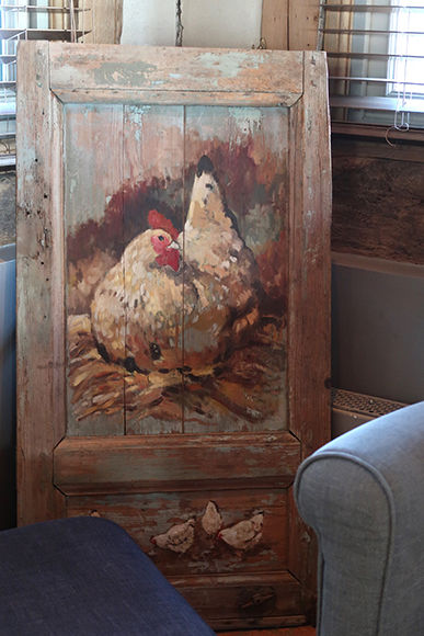サロンの奥にグループが集えるスペースがある。その昔貧しい画家たちが扉などに絵を残した伝統を再現。