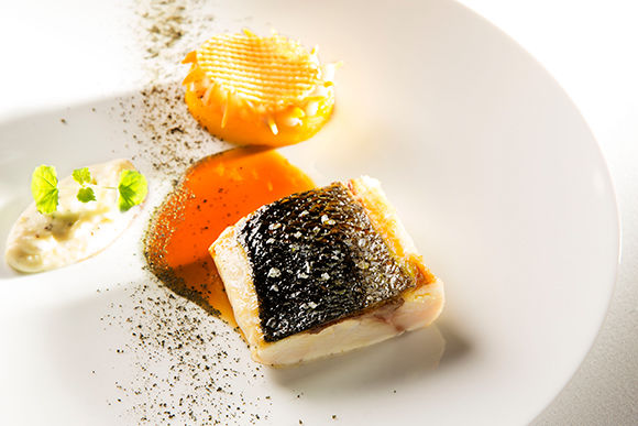 ガストロノミー・レストランはエレガントで洗練された料理を提案する。アラカルトだけでなく、3種のコースメニューあり。ランチタイムのセットメニューは55ユーロ。