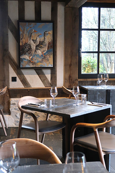 サロンと同じくノルマンディ的な雰囲気にあふれるレストラン。ランチは12時〜13時30分(L.O.)、ディナーは19時〜20時30分(L.O.)。