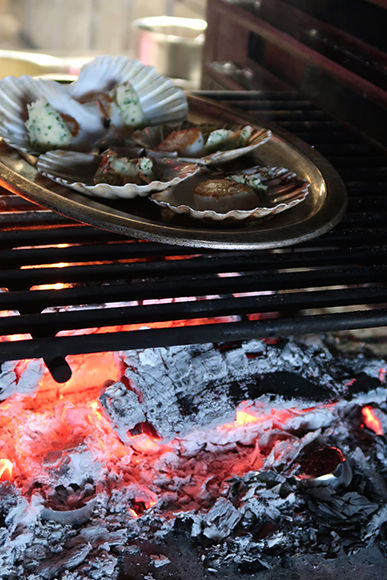 炭火焼きの魚介、野菜を始め、新鮮な素材をシンプルに料理。